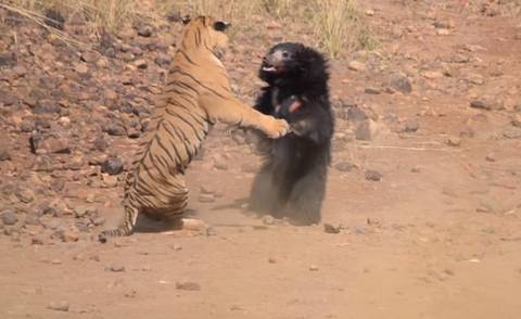 インド タドバ国立公園 トラ Vs クマの戦いが激写される 動物系